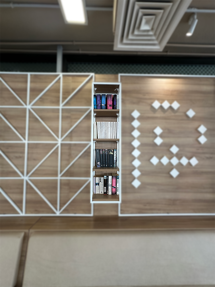 Looking to boost your product visibility in a cozy, high-foot-traffic café? These side-by-side display shelf stands are placed along the main wall on the ground floor, right next to the cashier — a hotspot for impulse purchases and casual discovery.